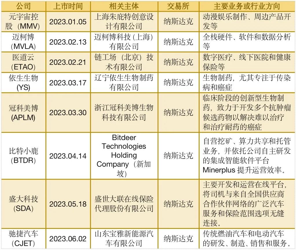 2023年上半年,SPAC可谓“回春”势头正旺。以美股市场为例,截至6月上旬,共有8家中概股公司通过SPAC方式上市,他们分别是元宇宙控股、迈柯博、医道云、依生生物、冠科美博、比特小鹿、盛大科技和驰捷汽车。
