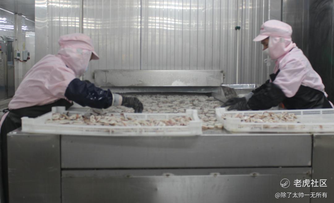 至于这背后的原理,锅圈食品工厂的技术负责人说道,别查论文了,这个真查不到。这套处理工艺的标准参数一是来自老师傅们长期的生产经验,另一方面也经过了多次的对照试验,盲测试吃的验证。最后的结论是,这套流程处理好的鱿鱼口感是最好的!浸泡后的鱿鱼会重新走上流水线,业务精湛的老师傅会麻利地将鱿鱼身切成几乎等大的片,一片鱿鱼仅仅几克,但在师傅们刀法的加持下,每串鱿鱼都能做到几乎等重,为的就是童叟无欺。
