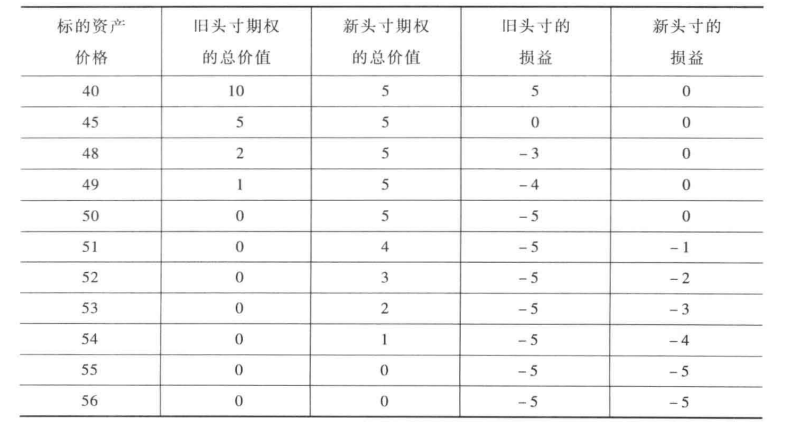 表1:到期时新头寸与旧头寸在标的资产价格不同时的损益比较(单位:元)