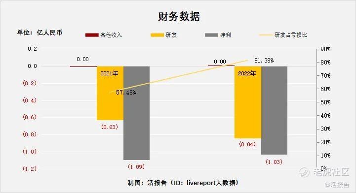 目前公司并没有主营收入,研发处于持续增加的状态,2022年同比增长率33.96%;净利处于持续亏损的状态。