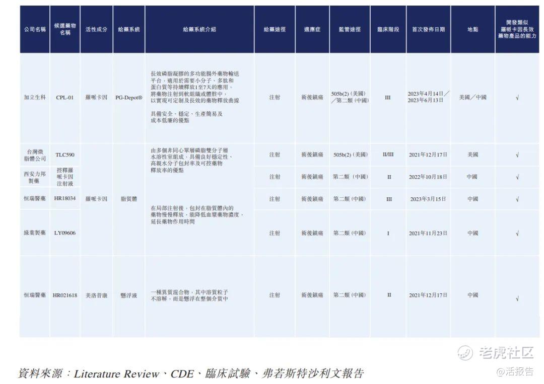 下表概述全球及中国开发中属于长效术后镇痛注射液的改良型新药: