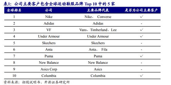 华利集团先后同全球运动品牌市占率前十名中的五位达成合作:Nike、VF、Under Armour、PUMA、Columbia。
