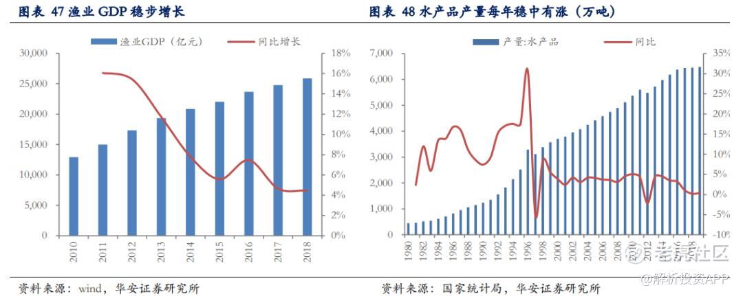未来,随着水产行业稳定增长,水产饲料需求量也将稳步提升。2010年我国渔业GDP为1.3万亿元,到2018年已经增至2.6万亿元,2010-2018年CAGR为9.0%。从出水产品产量来看,2014-2019年CAGR为1.6%。