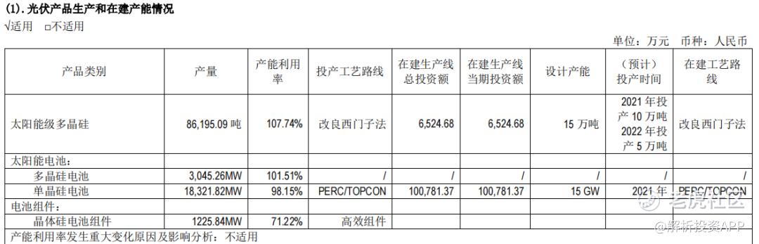为了突破产能瓶颈,公司持续推进产能建设。目前公司在建的高纯晶硅产能为15万吨,其中乐山二期、保山一期的10万吨项目将于2021年底前投产,届时公司将拥有超过18万吨的高纯晶硅产能,包头二期5万吨项目预计2022年建成投产。