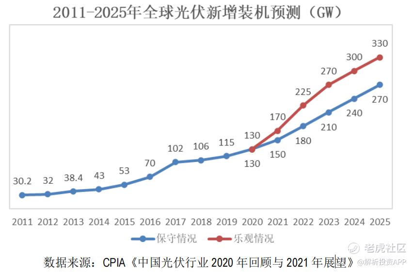 据CPIA预计,未来5年光伏新增装机规模将保持年均15-20%的复合增长率,2025年全球光伏新增装机容量有望达到270-330GW,其中国内新增装机达到90-110GW。