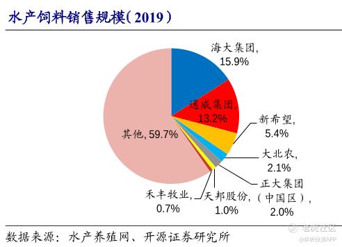 2019年,公司水产饲料销售规模在我国排名第二,市场份额为13.2%,仅次于海大集团。