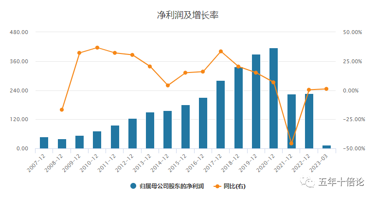 二、基本面分析:营收持续增长,净利润在2021年腰斩,缓慢恢复中。