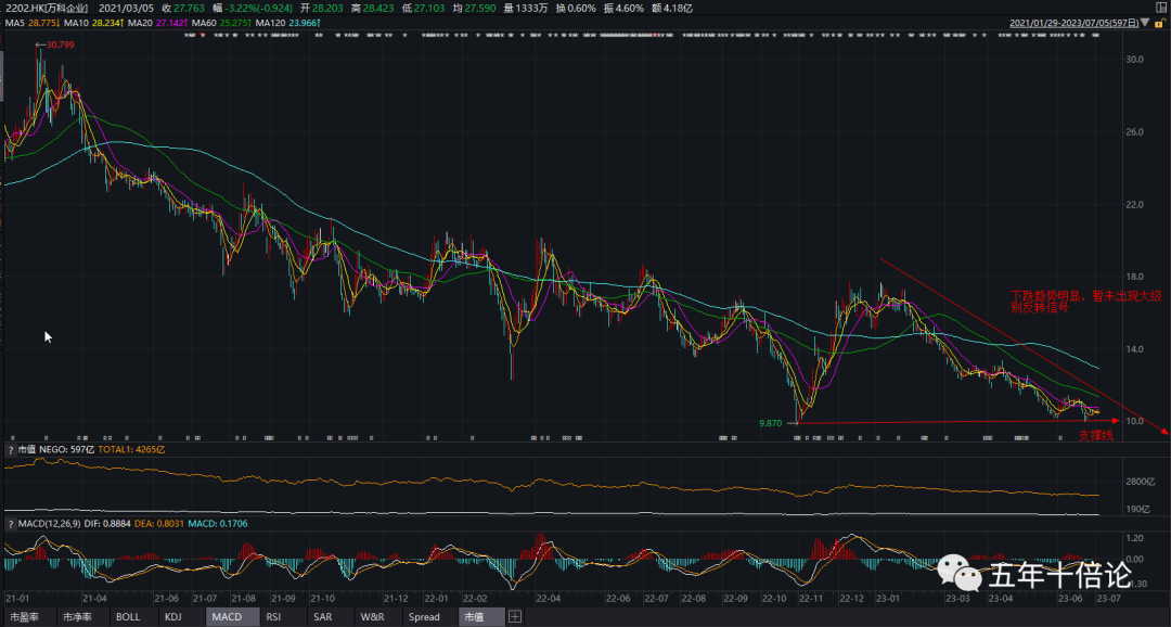(4)但当前总体走势偏空为主,想要通过投资万科赚钱,一定要注意房地产的整体趋势边际变化,要会等待。