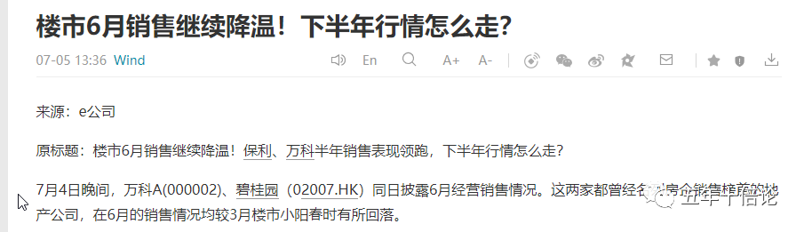 (2)行业整体下滑,覆巢之下无完卵。根据报道,进入二季度以来,房企销售表现持续回落,6月单月TOP100房企单月销售额已转为同比下降29.4%,环比下降19.0%。所以,相比于行业下滑的幅度,万科由于良好的管理和运营效率,下滑没那么大。