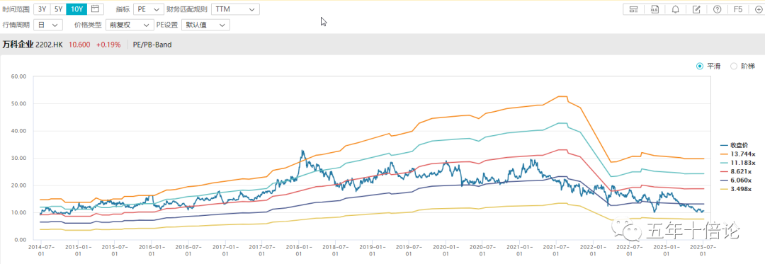 但从PE-band来看,万科企业当前处于底部估值区间,当前PE(TTM)只有4.9倍,股息率高达9.29%,可以说万科企业的估值是非常低了,但是万科企业的股价却还在一直跌,为什么?因为行业趋势在变坏!
