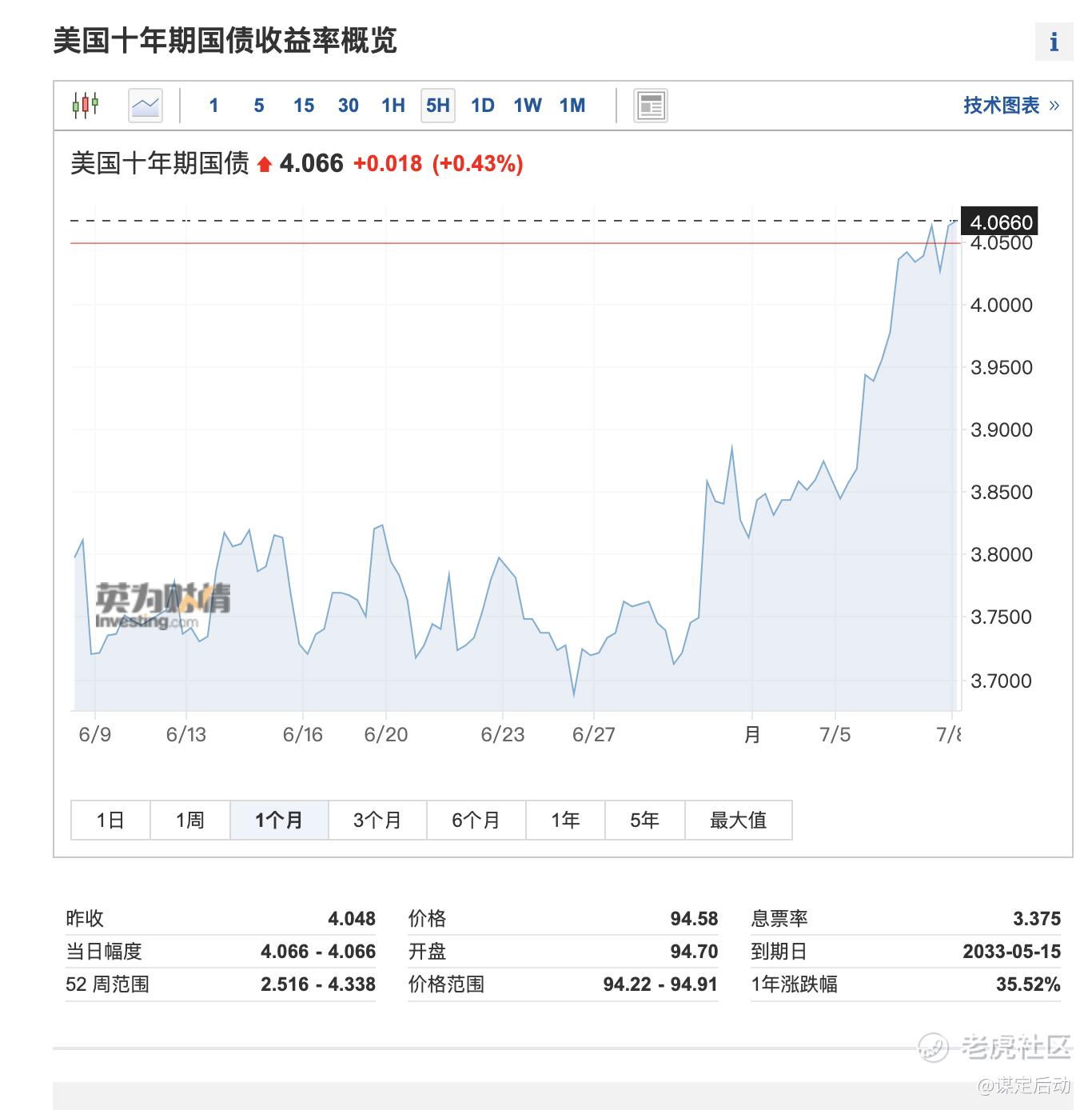 这个预期的改变直接影响了美国国债的走势,美国十年期国债收益率连续两天站在了4%以上。