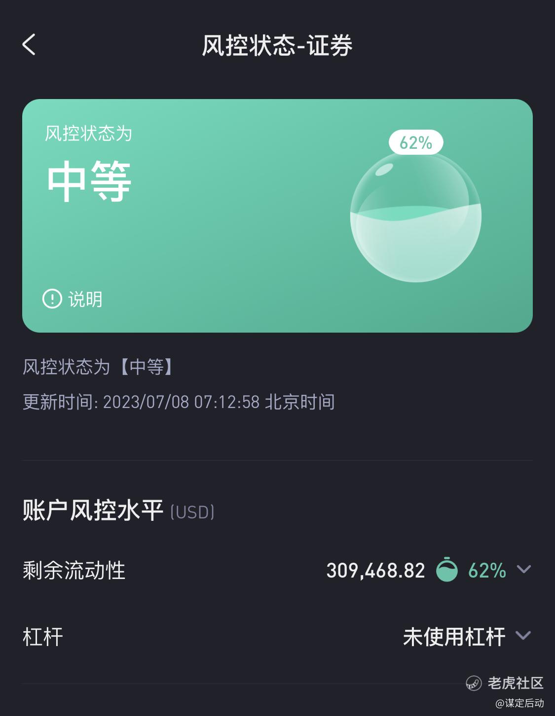 账户的剩余流动性略为下降到62%,风控状态为中等,上周是66%。