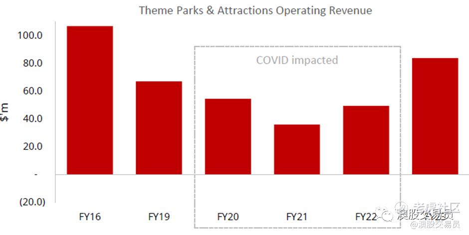 $ALG(+13.48%)Ardent Leisure Group Limited提供了截至 2023 年 6 月 27 日止年度未经审计的业绩初步更新,该集团的主题公园和景点业务的游客量和收入继续同比增长,23 财年最后两个月的营业收入较上年同期增长 21%。这导致 2H23 收入较上一期增长 30%。集团未经审计的收入为 8390 万澳元,比上一年增长了 70%,比 2019 财年新冠疫情前的业绩高出 25%。下图显示了主题公园和景点业务过去五年的营业收入表现,显示了强劲复苏趋势: