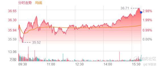 股价从全日低位35.42至全日高位 36.77,股价波动率3.81%。