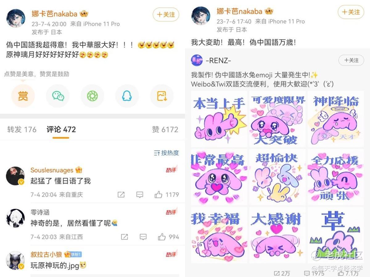 在日本画师的评论区中,有一本正经用同样的“新中国语”回应的,也有争做显眼包的。