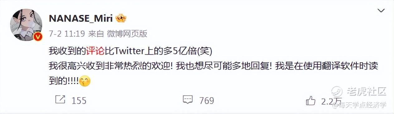 目前粉丝量已超过43万的海外画师@NANASE Miri直言收到的评论“比Twitter上的多5亿倍”。