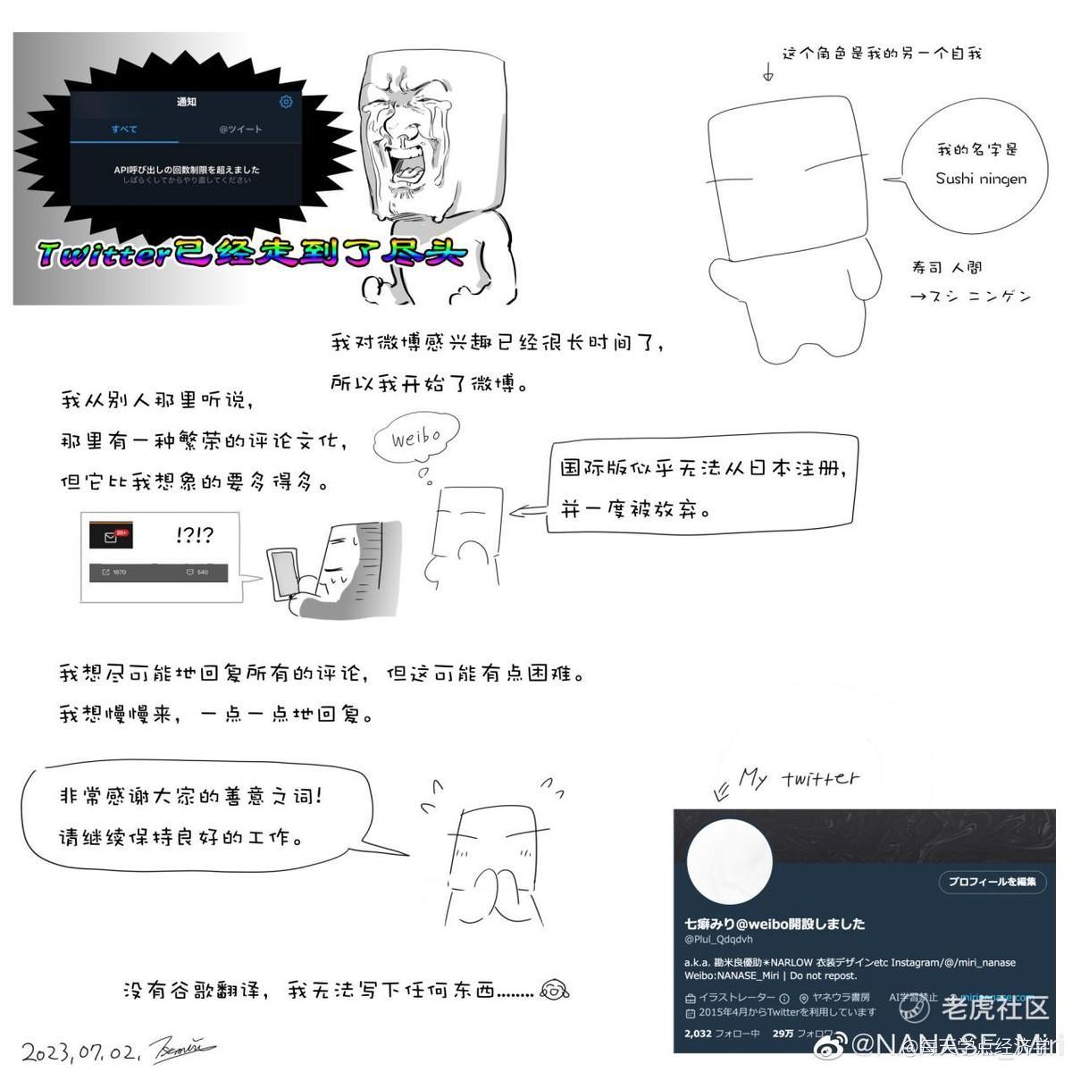 7月2日往后,一大批原本在推特活跃的画手突然涌入微博,以日本画师为主的海外博主为促进交流,有的使用谷歌翻译器,有的干脆抛弃生硬的机翻直接用起了“新中国语”。