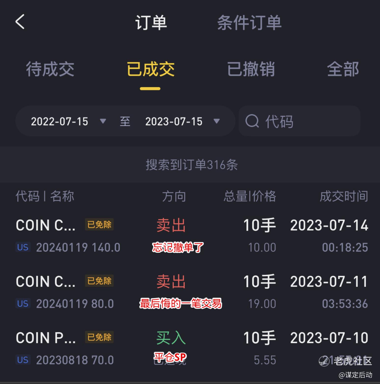这个星期的操作:投资中总有遗憾,在经过一年多漫长的等待后,我在COINBASE大涨24%前一天把10手Call和12手Sell Put平仓了[喷血]。