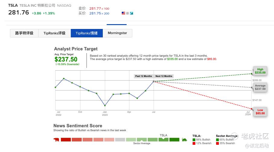 现在特斯拉的股价把未来的好消息都计价了,远超现在的基本面能支撑的股价。在过去3个月里,有30位排名靠前的分析师为特斯拉提供了12个月的目标价格预测。这些分析师的平均价格目标为237.50美元。其中,最高的估价为335.00美元,最低的估价为85.00美元。