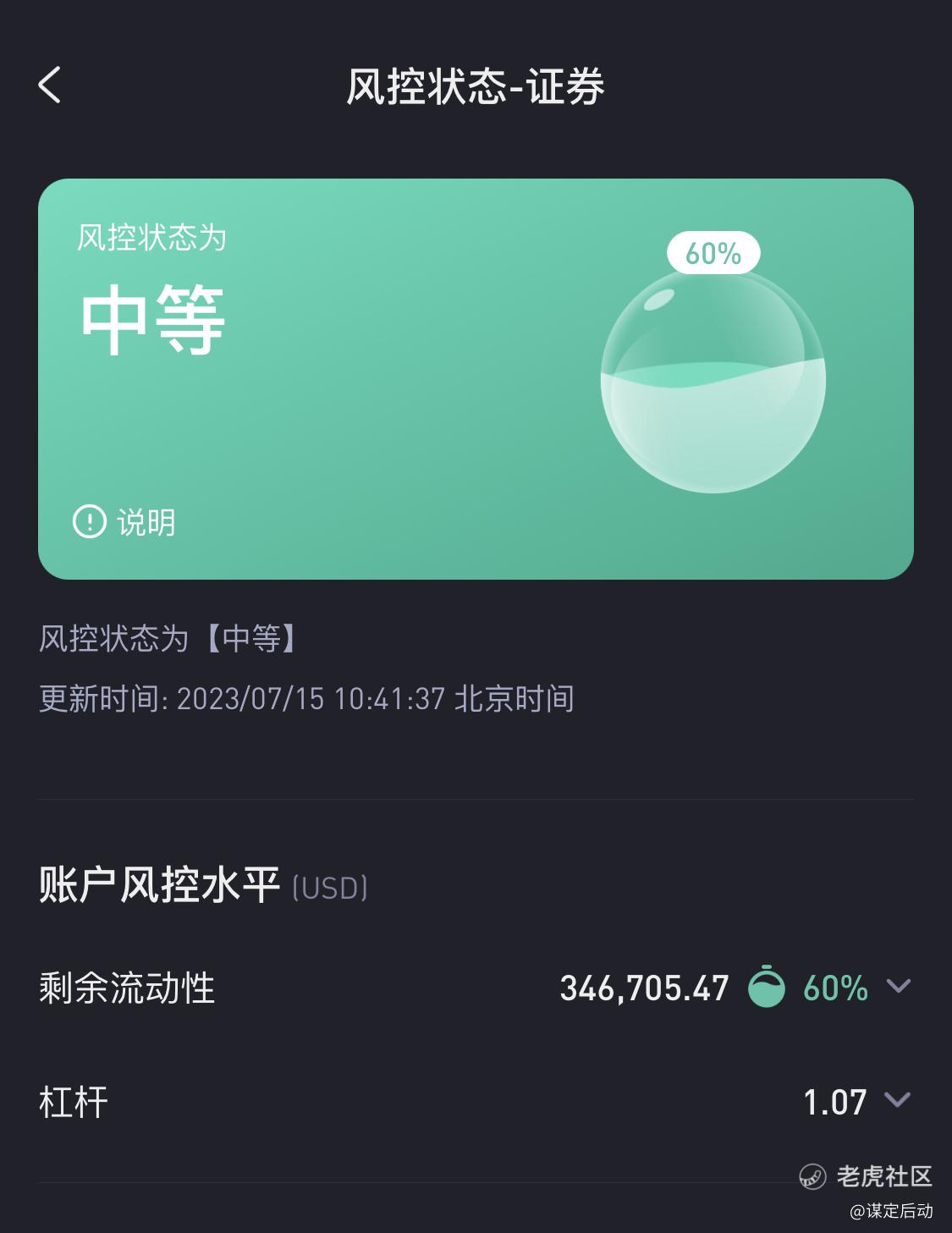 账户的剩余流动性略为下降到60%,风控状态为中等,和上周大致持平。