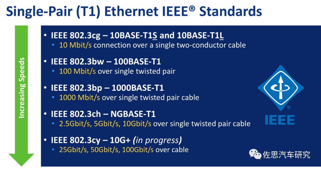 IEEE为汽车以太网制定了物理层标准。