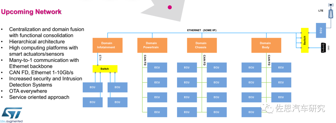目前主流的中高端车型采用域控制器架构,以太网交换机主要用在两个领域,一个是域控制器内部,一个是网关。座舱域和ADAS域会至少需要一片以太网交换机,网关可以是在车身控制域也可以是在T-Box内。