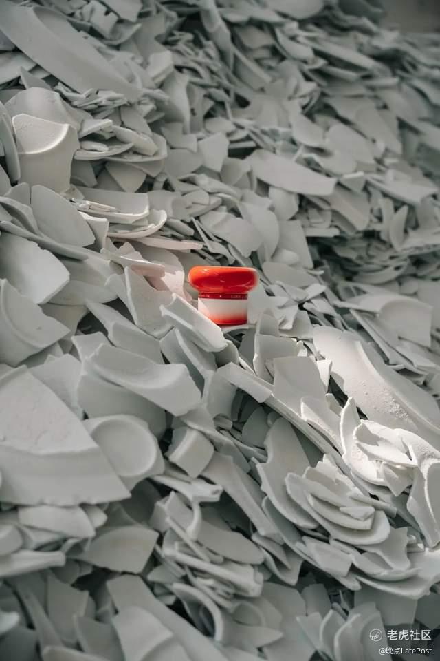 何一和团队也曾到过景德镇。和陶瓷大学以及当地供应商合作开发了由 90% 以上回收陶瓷制成的面霜包装。她又找到乐天陶社、“祎设计” 的创始人郑祎。郑祎在景德镇多年,见过堆成小山的废弃陶瓷,因此成立了祎设计——一家专门研究陶瓷废弃物升级再造的设计工作室。郑祎有技术,何一有产品,于是两个理念相似的人一起做出了一款废弃陶瓷再利用的沥水皂托。