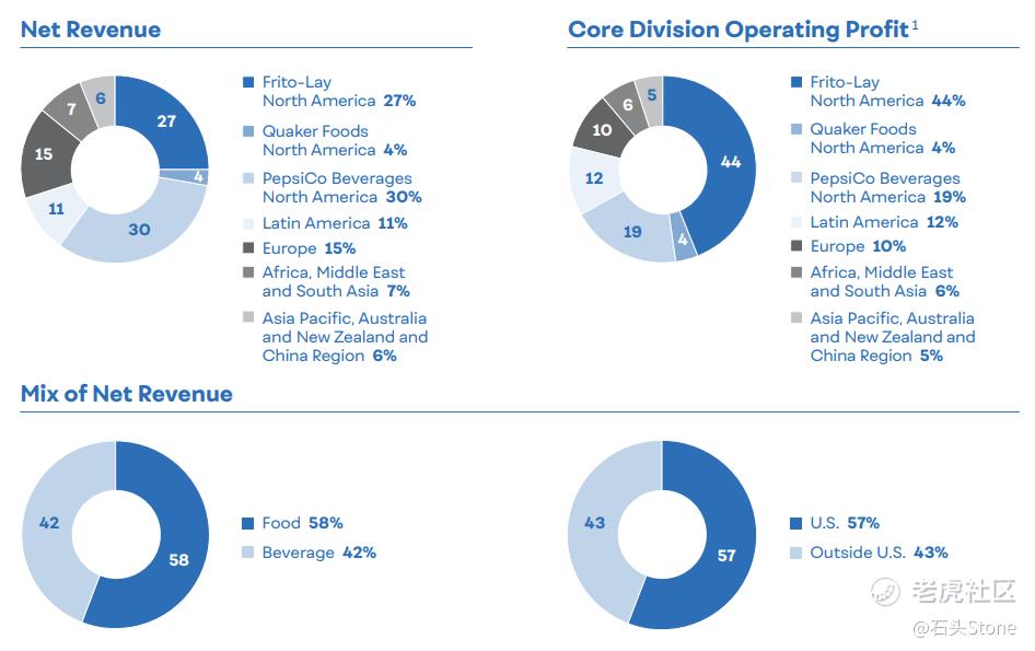 根据年报统计,百事公司目前主营为食品和饮料,美国为第一消费大国。