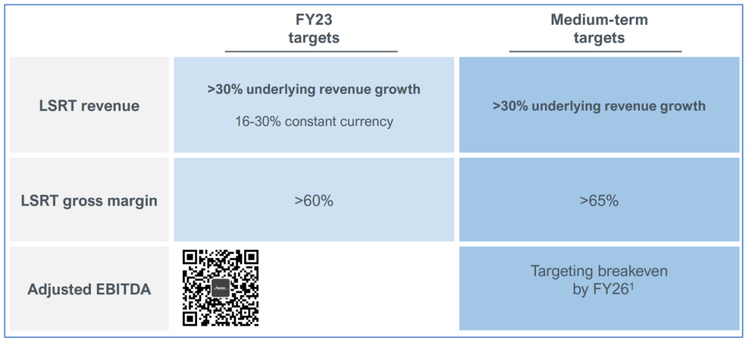 LSRT毛利率60%以上,中期目标是毛利率大于65%。