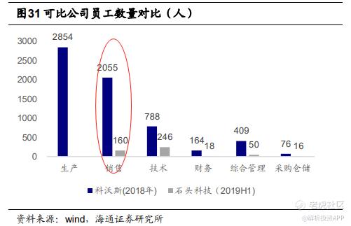 科沃斯由于自建销售渠道,例如通过在线下大型商场开设数百家以体验为主的“店中店”,导致过程会产生较高的销售费用,拉低了净利率。而且从员工数量来看,科沃斯销售人员数量是石头科技的10倍有余。这也是为什么尽管科沃斯市占率高达40%,并且产品价格带较宽,但实际上获得的利润远远不如石头科技的原因之一。