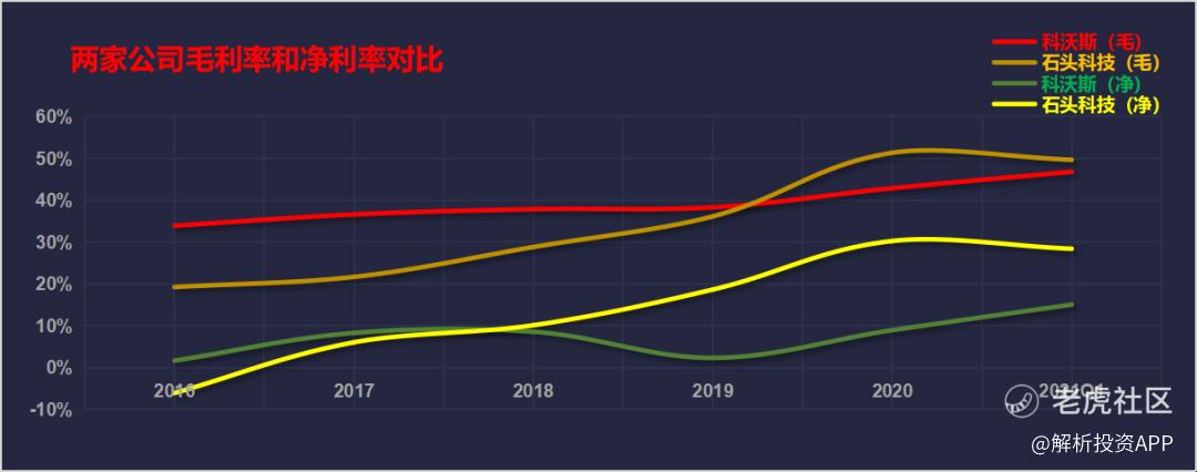 不过,也是由于双方经营模式的不同后续带来了它们之间毛利率以及净利率的差异。