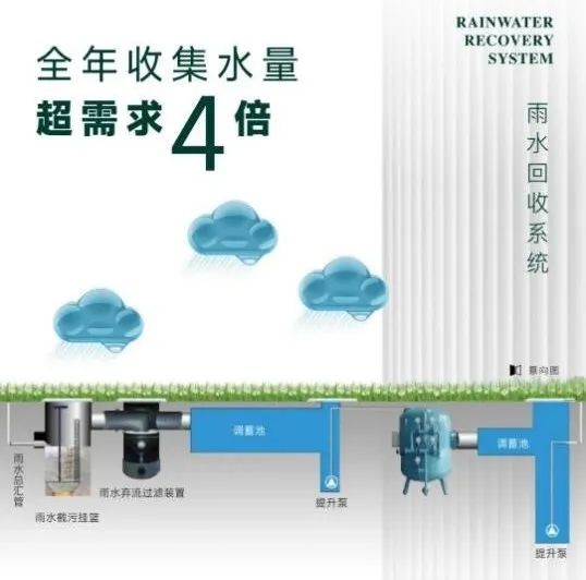 在外部环境打造上,项目一方面积极推进海绵城市建设通过雨水收集、下凹式绿地等技术措施,对雨水进行合理化应用;另一方面凭借屋顶绿化设计,不仅丰富了景观层次,还起到隔热保温的作用,缓解城市热岛效应降低能耗。
