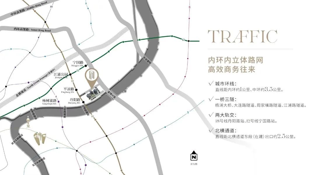 中国节能·上海首座毗邻杨浦大桥,占据铂金6英里的“桥头堡”,拥有“1桥2环3轨4隧”立体交通路网,能够大幅缩减通勤的时间成本,提高商务效率。其中,“1桥3隧”便于浦东浦西两岸往返,内环、中环城市主要环线入口均在3公里内,缩小城区空间距离,“3大轨交”环伺,18号线举步可达,方便员工日常通勤。