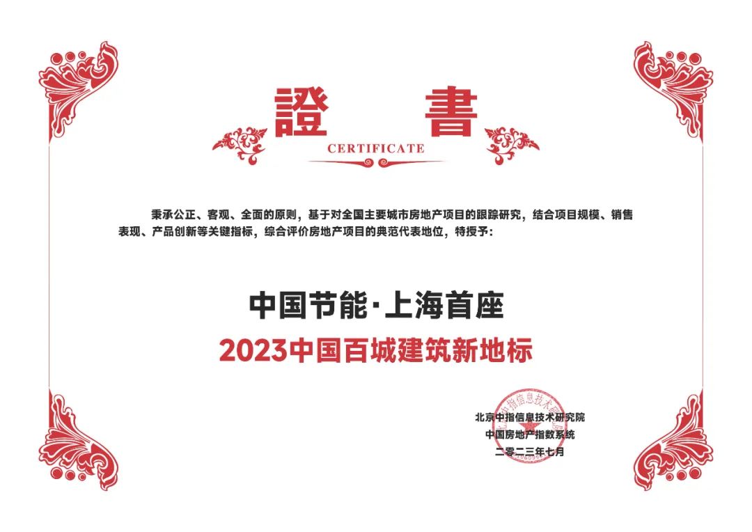 | 2023中国百城建筑新地标证书