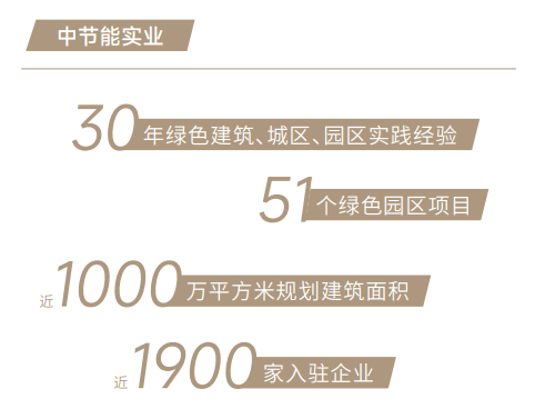 30余载发展中,中节能实业传承央企基因,实力操盘18座城市建设,以匠心精铸全国51个绿色园区项目,以大量绿色建筑开发与技术集成经验,连续四年蝉联“中国产业园区运营商综合实力TOP10”,打造全国领先的中国建筑节能力量。