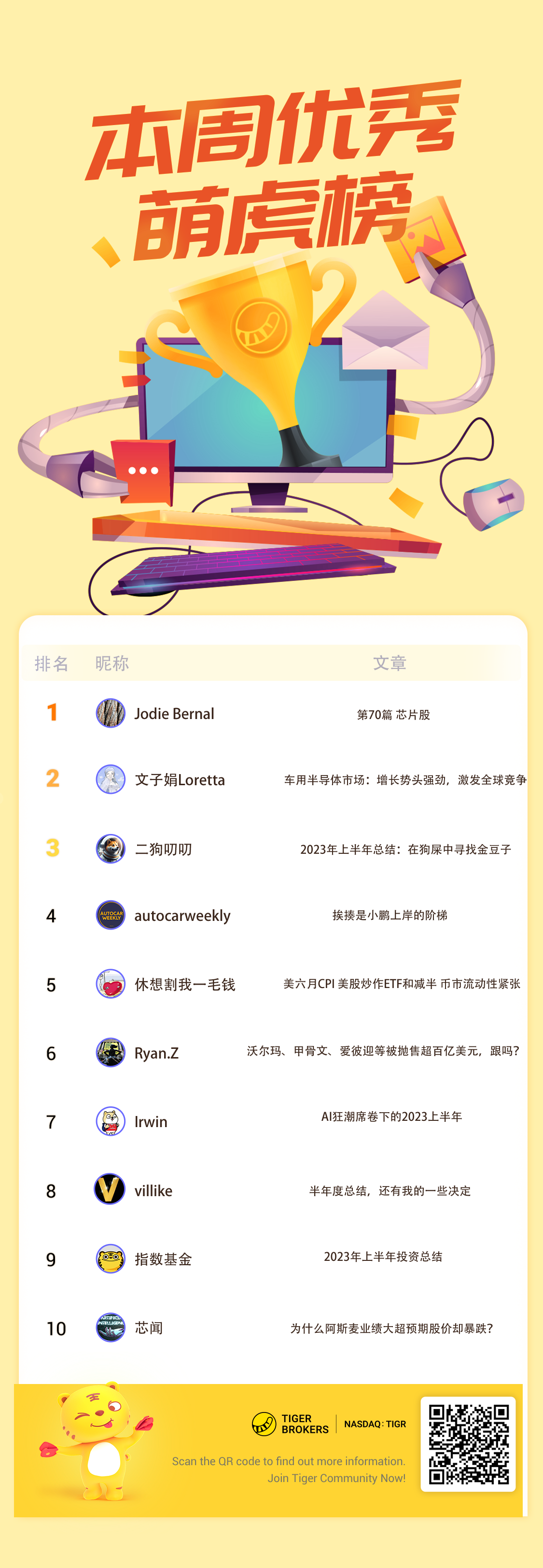 🏆优秀萌虎榜(7.1-7.21)