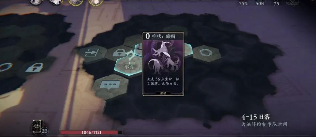 此外,游戏还加入了Roguelite探索,通过在迷雾地图中走格子的形式,将每一局战斗串联起来。探索过程中,玩家将收集到各种“造物”道具增强战斗力,也会获得“症状”牌,遭遇SAN值狂掉的情况,贴合了克苏鲁题材的风格。