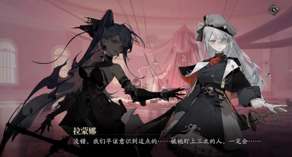 《忘却前夜》充斥着明显的神秘、怪谈风格,如画面整体色调偏灰,角色立绘大多采用明度较低的色彩,来表达不可名状的怪异和恐怖感,美术质量基本在线。战斗中,角色技能释放带有华丽特效、细腻的光影效果,具有视觉冲击力。虽然逊色于《重返未来:1999》惊艳的战斗演出,但已达到主流二次元产品的及格线。