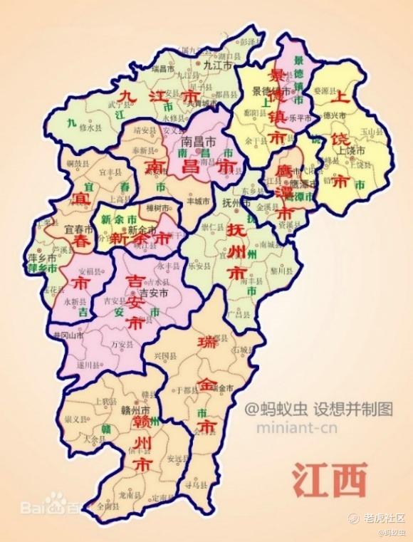 本文8500字左右,贴心送上太长不看版:地级市数量仍为11个;九江区划保持不动;适度强省会,南昌吃进宜春东部的靖安、奉新、高安、丰城四县市;萍乡整体回归,和吉安的安福、永新一起并入宜春;新余扩大,划入宜春的樟树和吉安的新干、峡江;上饶的鄱阳、余干、万年并入景德镇;鹰潭扩容,划入上饶的弋阳和抚州的金溪、资溪;赣州一分为二,析出瑞金、宁都、石城、兴国、于都、会昌、寻乌成立瑞金市;上饶、吉安、抚州瘦身减负。