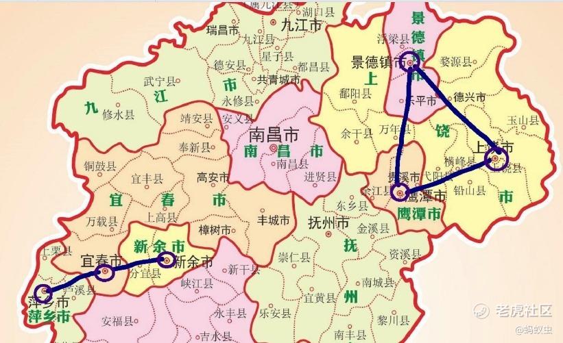 真不是!这是因为两个板块的情况不同。赣东北三市总共947万人口、5708亿元GDP;而宜春析出东四县市后,赣西三市只有580万人口和4320亿GDP,前者的体量比后者多出了一个抚州市。关键地理位置迥异,赣西三市在一条120公里的线上,相互挨得很近便于整合;而赣东北三市呈等腰三角形,最短的边(鹰潭到上饶)也超过了100公里,几乎天生为三分而生。