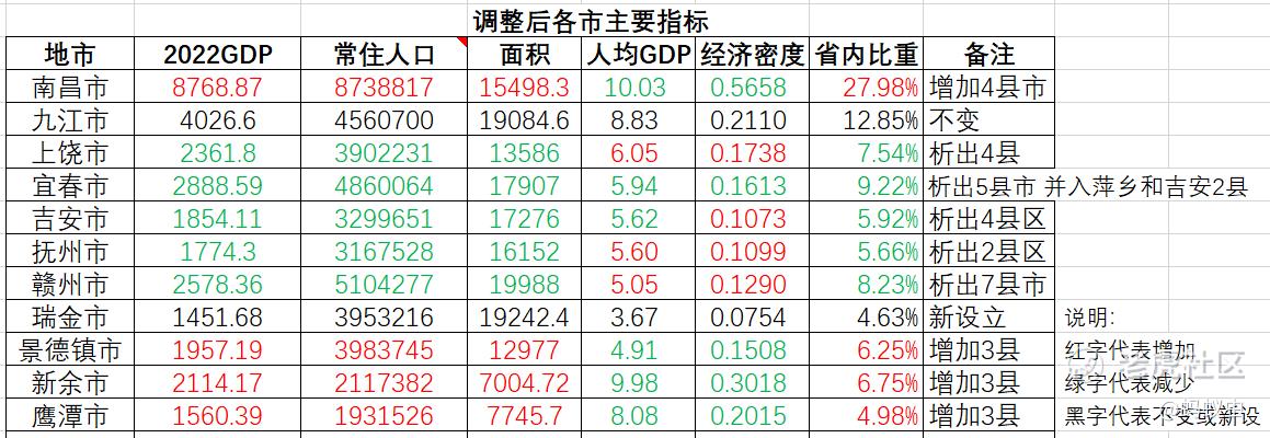 相比上饶、赣州在缩小辖区之后的人均GDP显著提升,这两个城市基本没有变化。主要原因是它们各县区普遍落后,而且比较平均。它们只是小小瘦身成功,但如何强健体魄,还得靠今后自己的不懈锻炼。