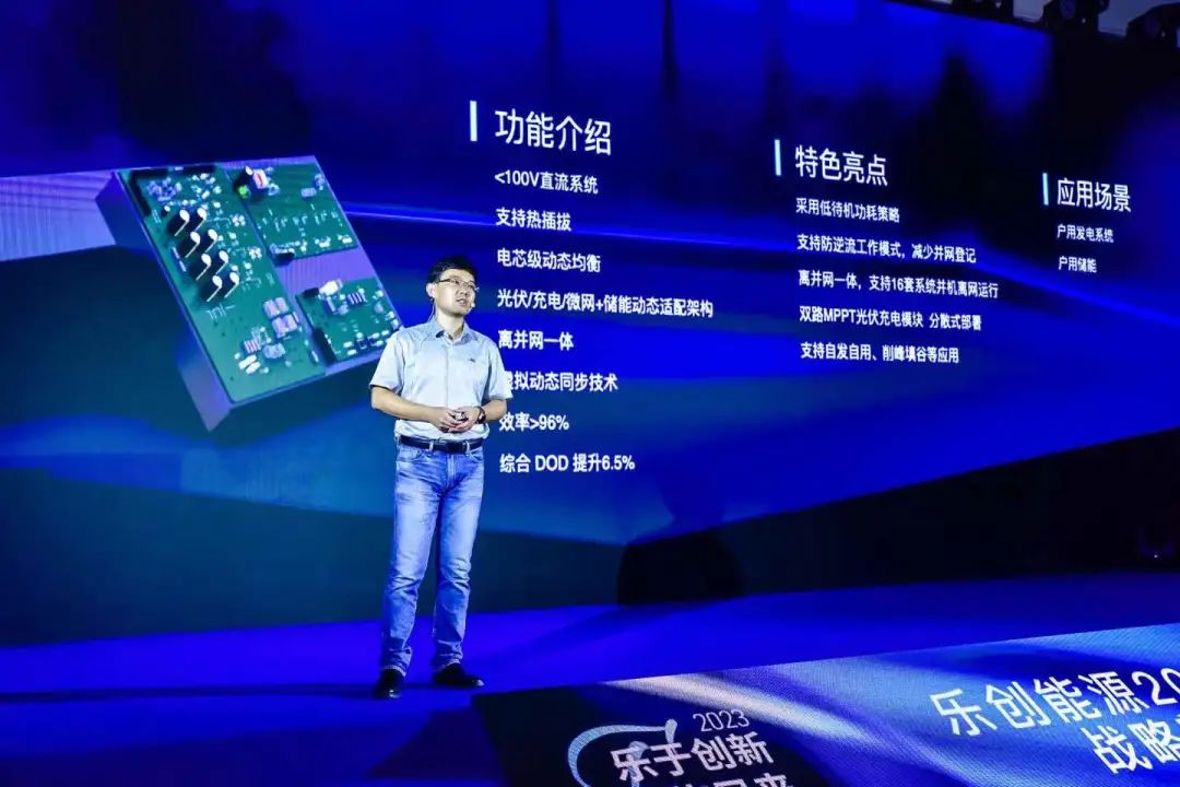 乐创的“如意”系列产品则体现了BMS、PCS、EMS“3S融合”的行业趋势,是乐创大模型打通各算法模块后的具体落地产品。通过“3S融合”,乐创将电池管理系统进行高度的集成化,降低了传统产品的冗余设计。潘多昭表示,基于“如意”产品,储能产品的平均放电深度可提升6.5%,虚拟动态同步技术效率可达96%,储能系统管理能力进一步提升。