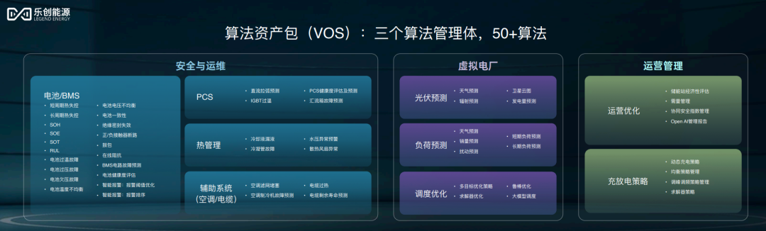 常伟介绍,目前,乐创已经积累了50+的预测式算法模型以及数十款统计分析类算法模型,它们统称为“VOS包”,共同构成了乐创的安全运维体系、虚拟电厂体系、运营管理体系三大“算法集群”。而乐创大模型的设想,就是用一个大模型统合这百余个小模型。