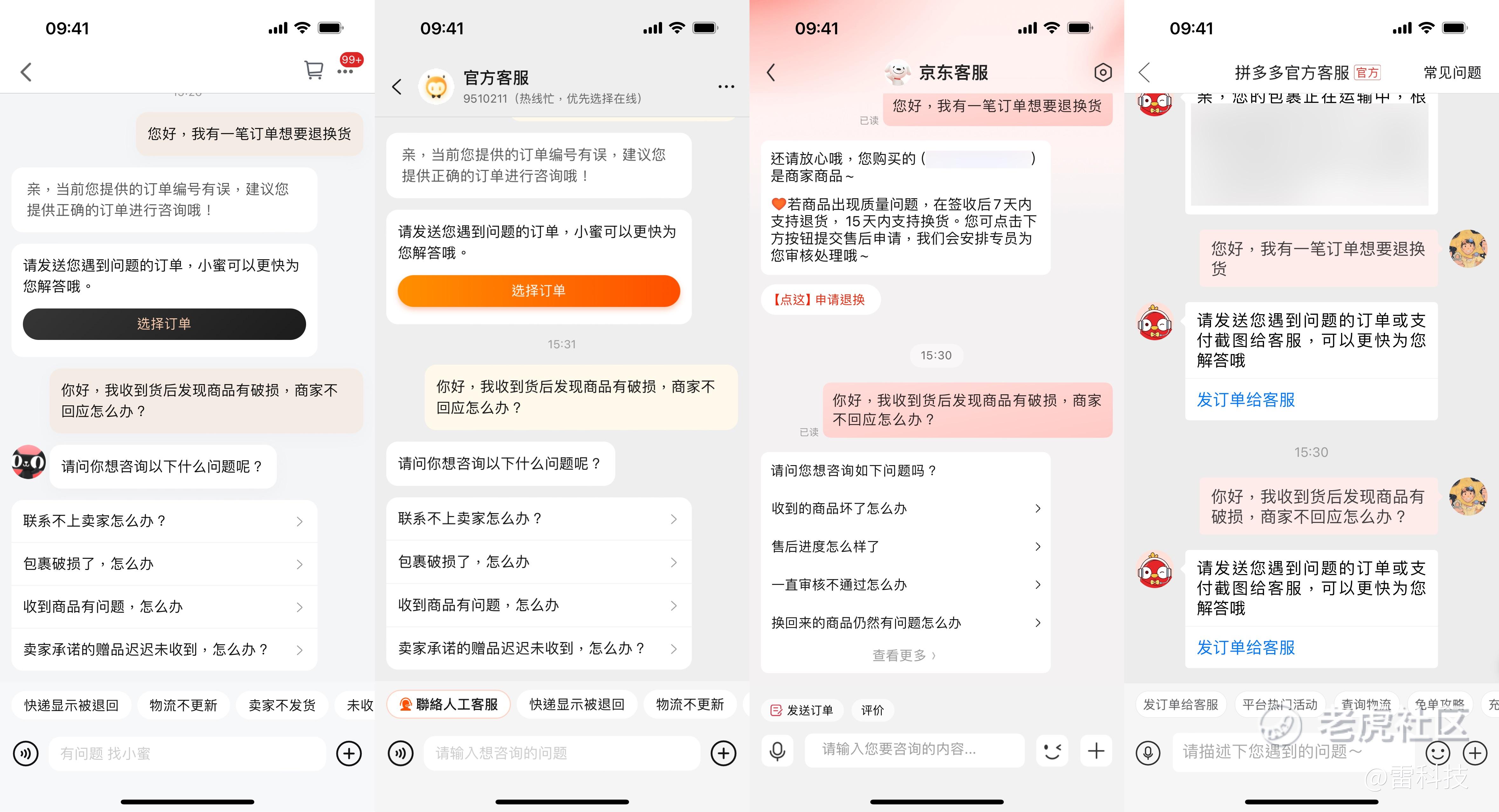 而淘宝、天猫和京东,虽然「听不懂人话」,但最基本的退换货、商家纠纷等小事情,用户还是能得到妥善地处理。功能性上,无功无过。