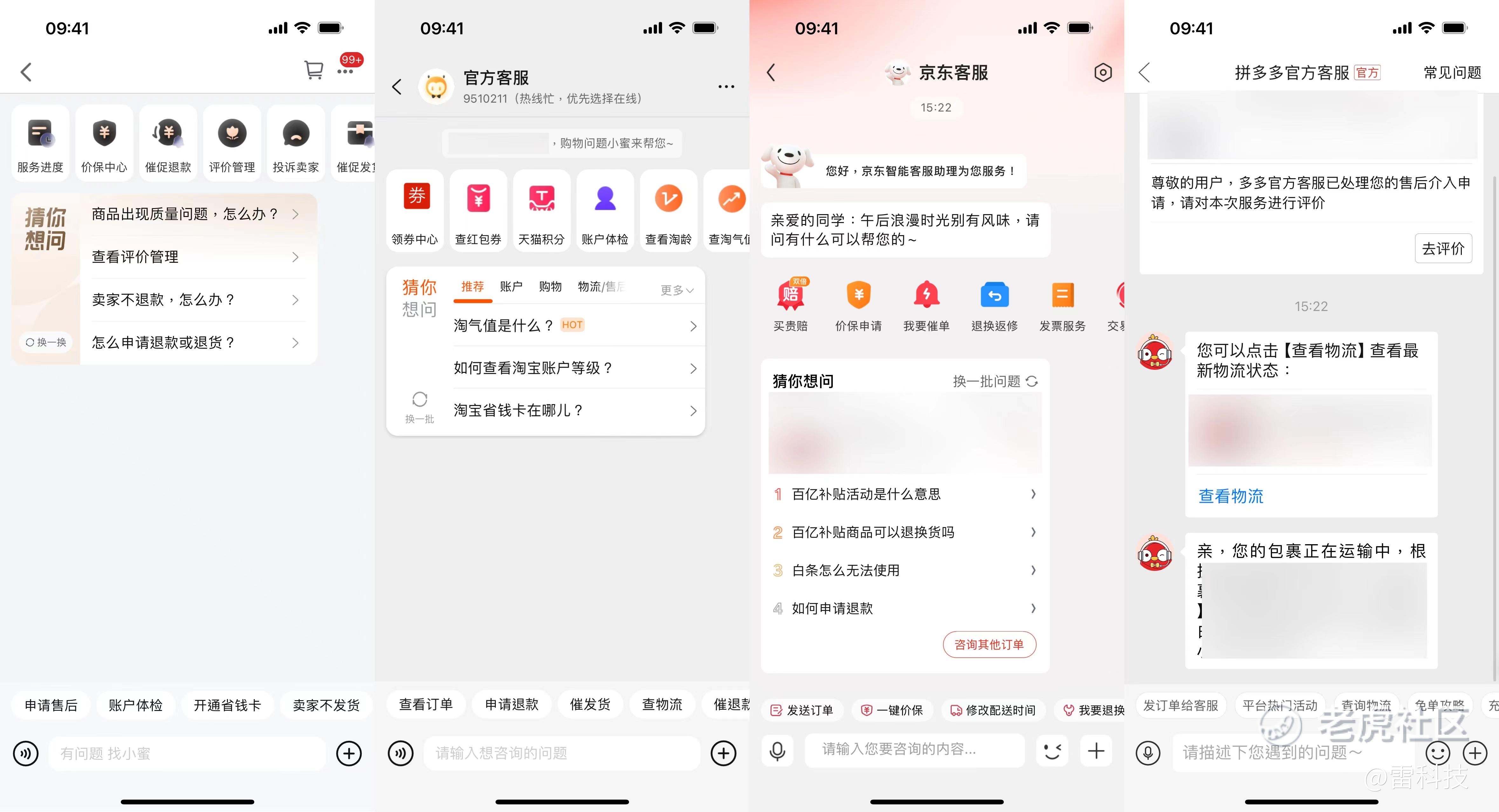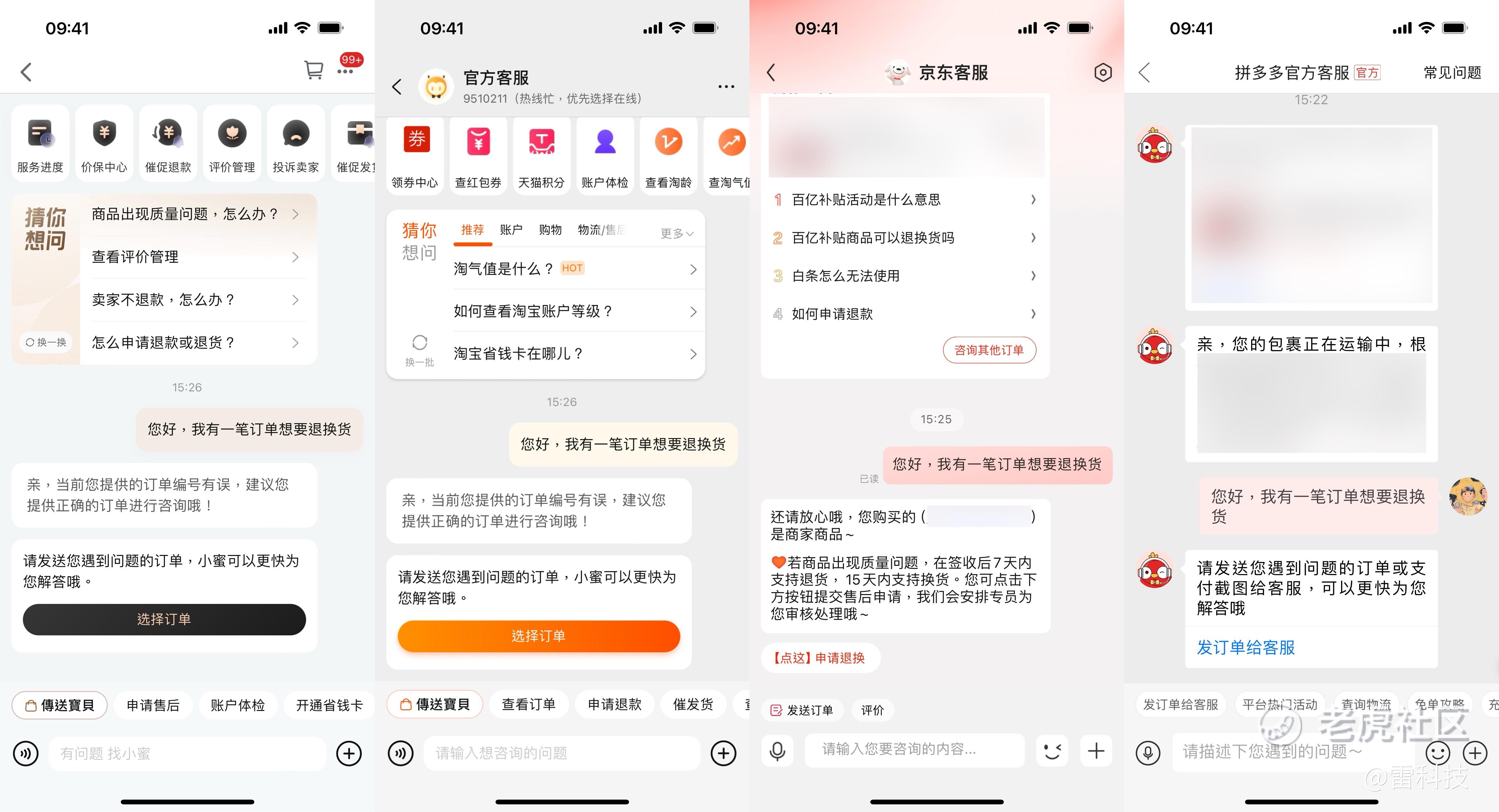 为了感受电商平台智能客服的服务,小雷设计了几个问题,打算给京东、淘宝、天猫和拼多多来一场小测试。