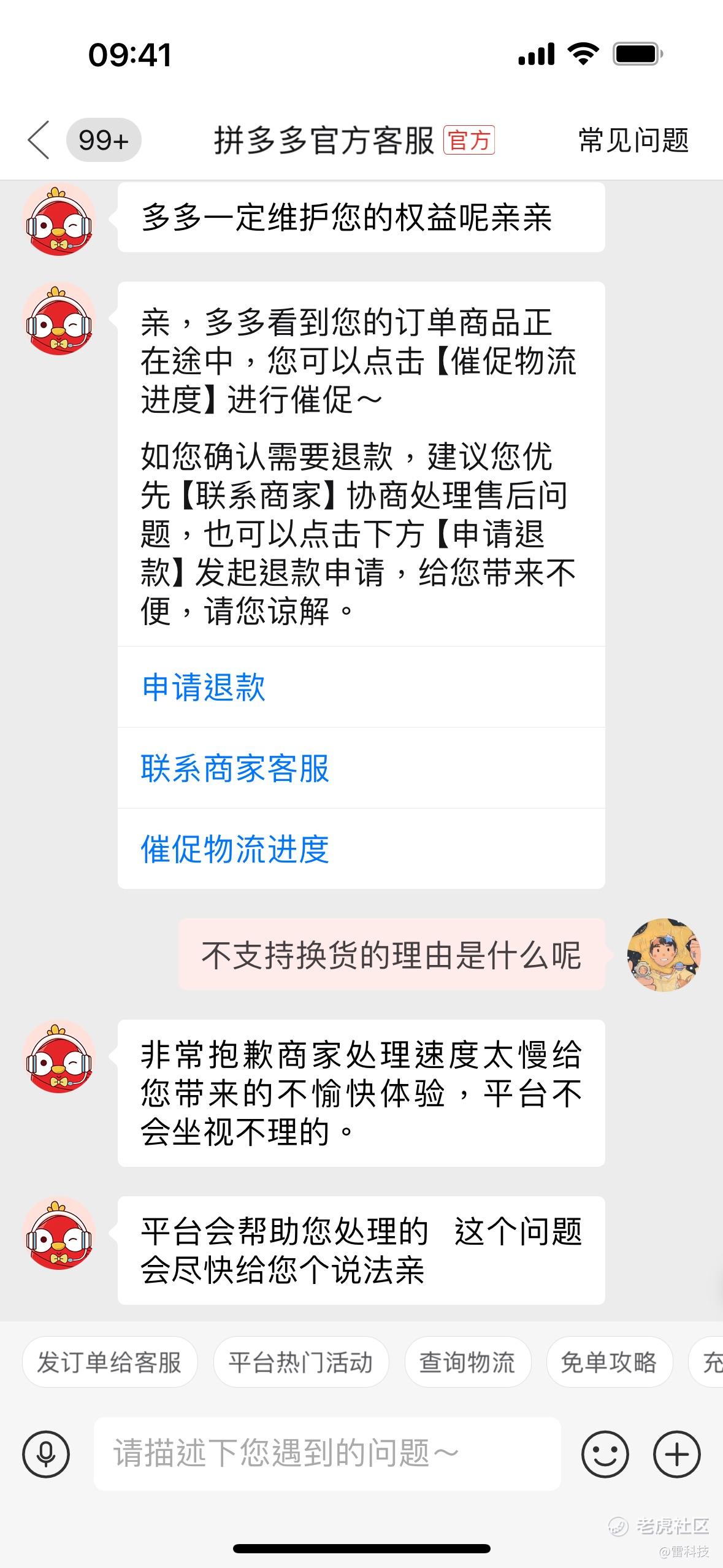 好吧,那小雷只好随机挑选了一个近期订单发送给客服。开始交流后,拼多多像是变了一个人一样。