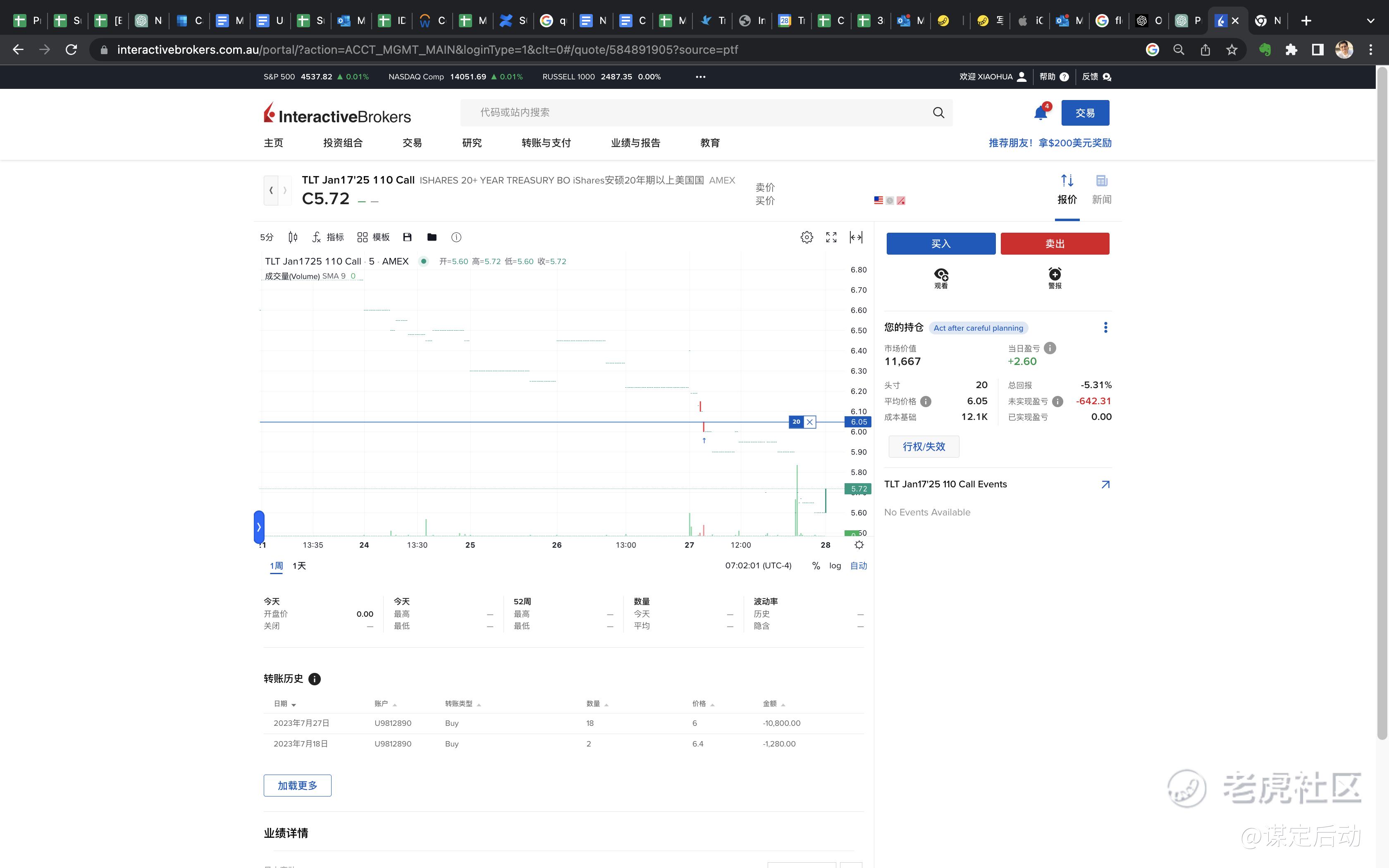 这个星期加仓了18手TLT的LEAP CALL,行权价为110,行权日为2025年1月,买入的价格是6.0刀。
