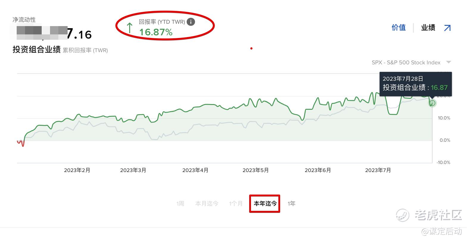 年初至今盈利为16.87%,和标普500大盘收益率18%大致持平。