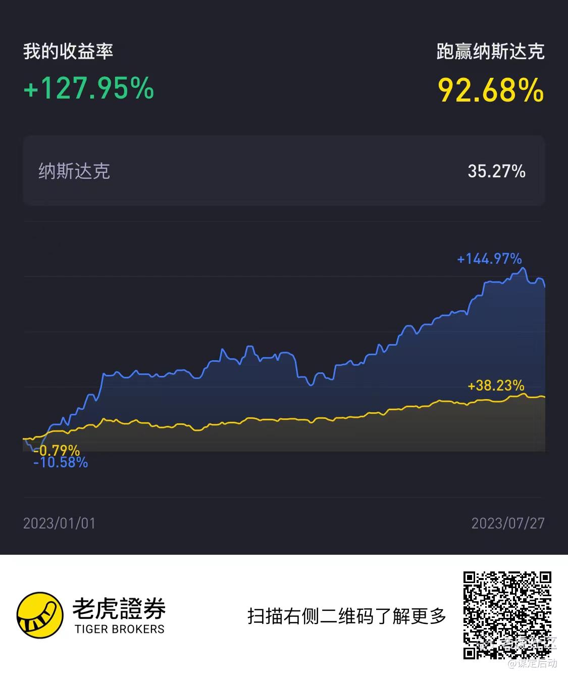 这个星期账户收益率没有太大变化,为127%,上星期是134%,跑赢纳指的35%。