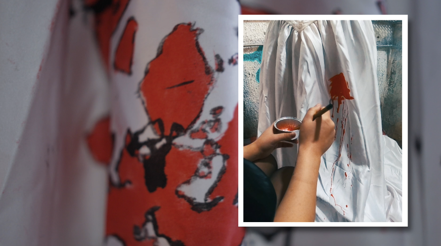 ▲第2位妈妈在白裙子上画上象征“自由”的翅膀